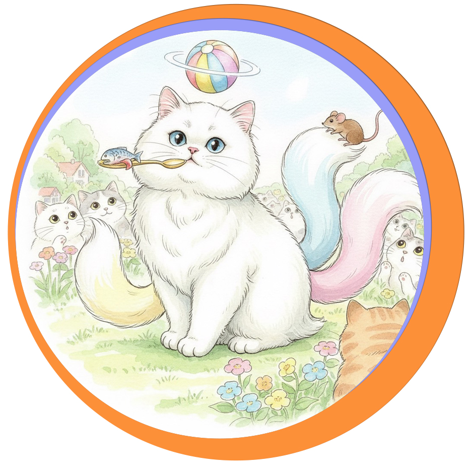 リリーは、3本の しっぽが じまん。 「ほかの ねこたちとは、ちがうんだもん!」 そうおもって、ちょっと えらそうにしていました。