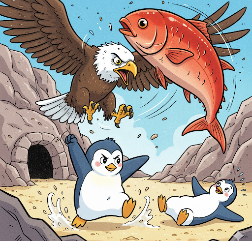 One day, a mean-looking Sea Eagle swooped down from the sky!