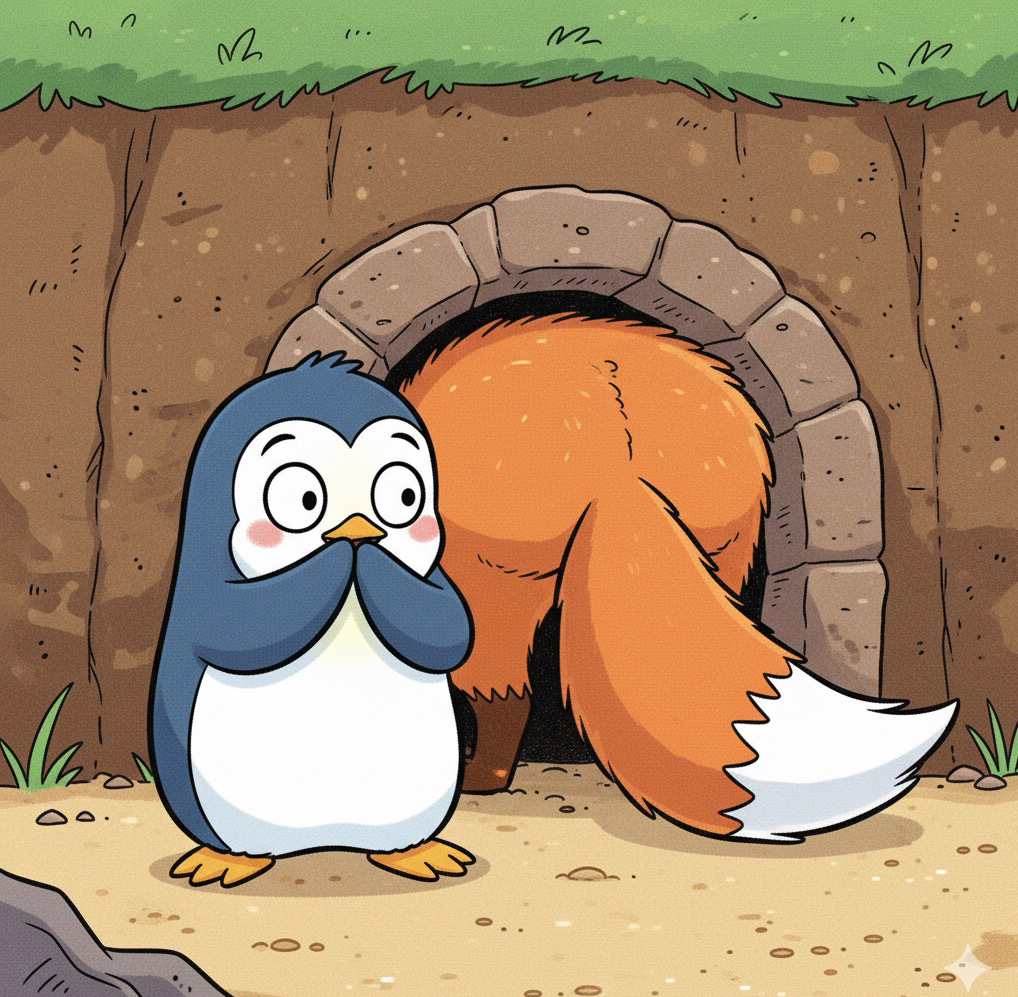 A Fox with a twitching nose had its butt sticking out of the entrance, squeezing itself into the burrow!