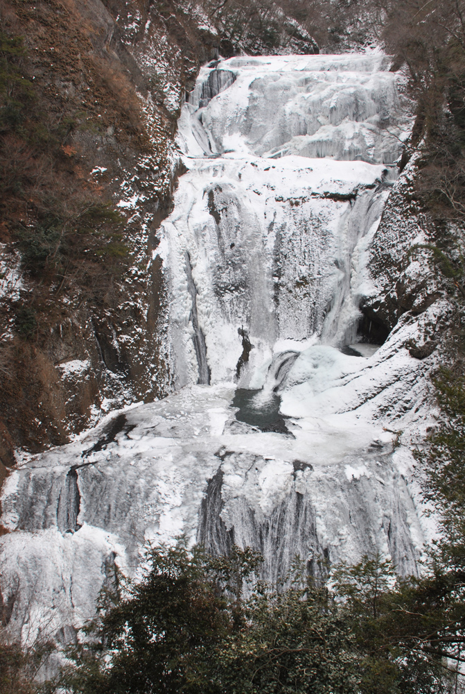 氷結した滝を撮影する苦労は、まず冷たさ。カメラが寒さで凍らないように防寒対策をしてください。また足元が滑りやすいのでくれぐれも注意してください。転倒は本当に危険です。